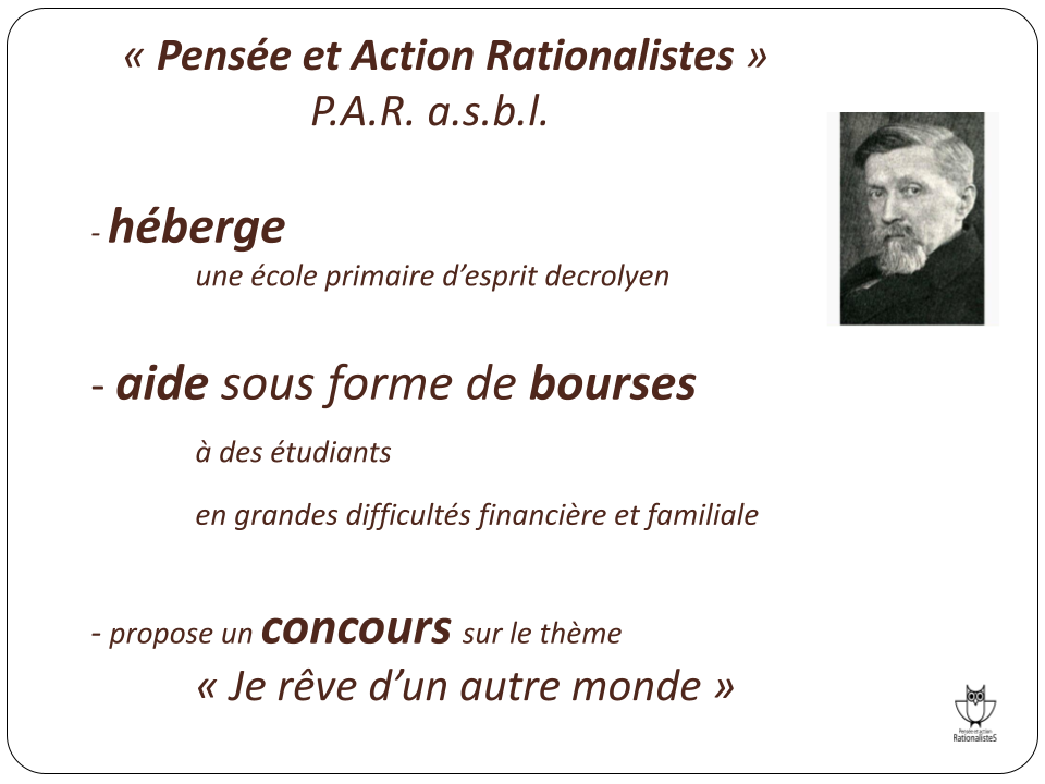 Nous sommes persuadés, au sein de l’asbl « Pensée et Action Rationalistes » que chacun mérite une chance égale d’entamer et réussir ses études et de se réaliser professionnellement ensuite.