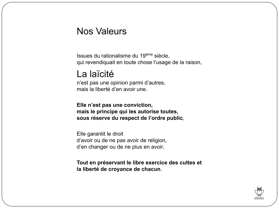 Héritière du Rationalisme du 19ème siècle, qui revendiquait en toute chose l’usage de la Raison, la Laïcité d’aujourd’hui n’est pas une opinion parmi d’autres, mais la liberté d’en avoir une.